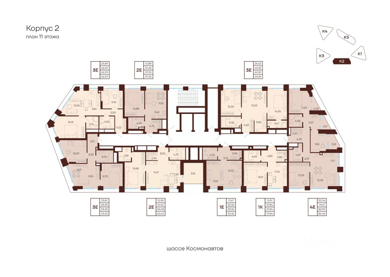 Продаётся 3-комнатная квартира в строящемся доме (К2), срок сдачи: I-кв. 2030, общей площадью 62.29 кв.м., на 11 этаже. Новый жилой комплекс ''МАНЕРЫ'' от Специализированного застройщика ''УНО'' расположен по адресу: г. Пермь, по ул. шоссе Космонавтов.