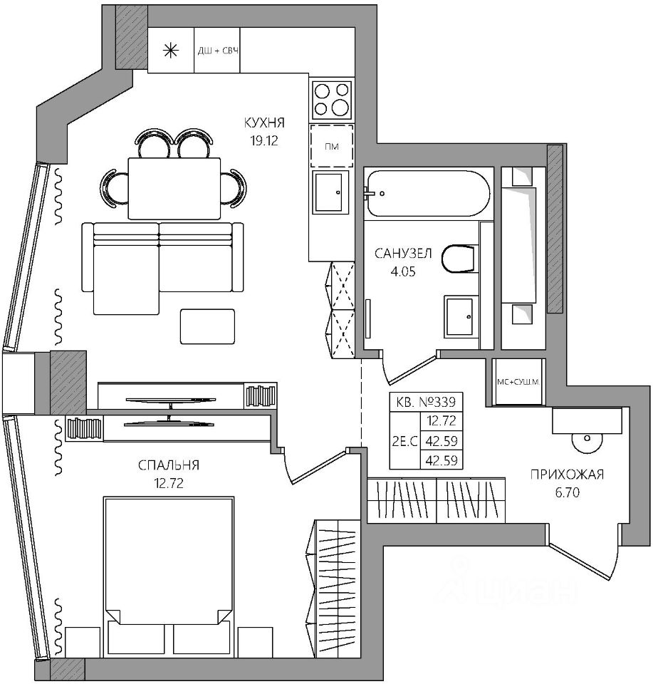 Продаётся 2-комнатная квартира в строящемся доме (К2), срок сдачи: I-кв. 2030, общей площадью 42.59 кв.м., на 7 этаже. Новый жилой комплекс ''МАНЕРЫ'' от Специализированного застройщика ''УНО'' расположен по адресу: г. Пермь, по ул. шоссе Космонавтов.