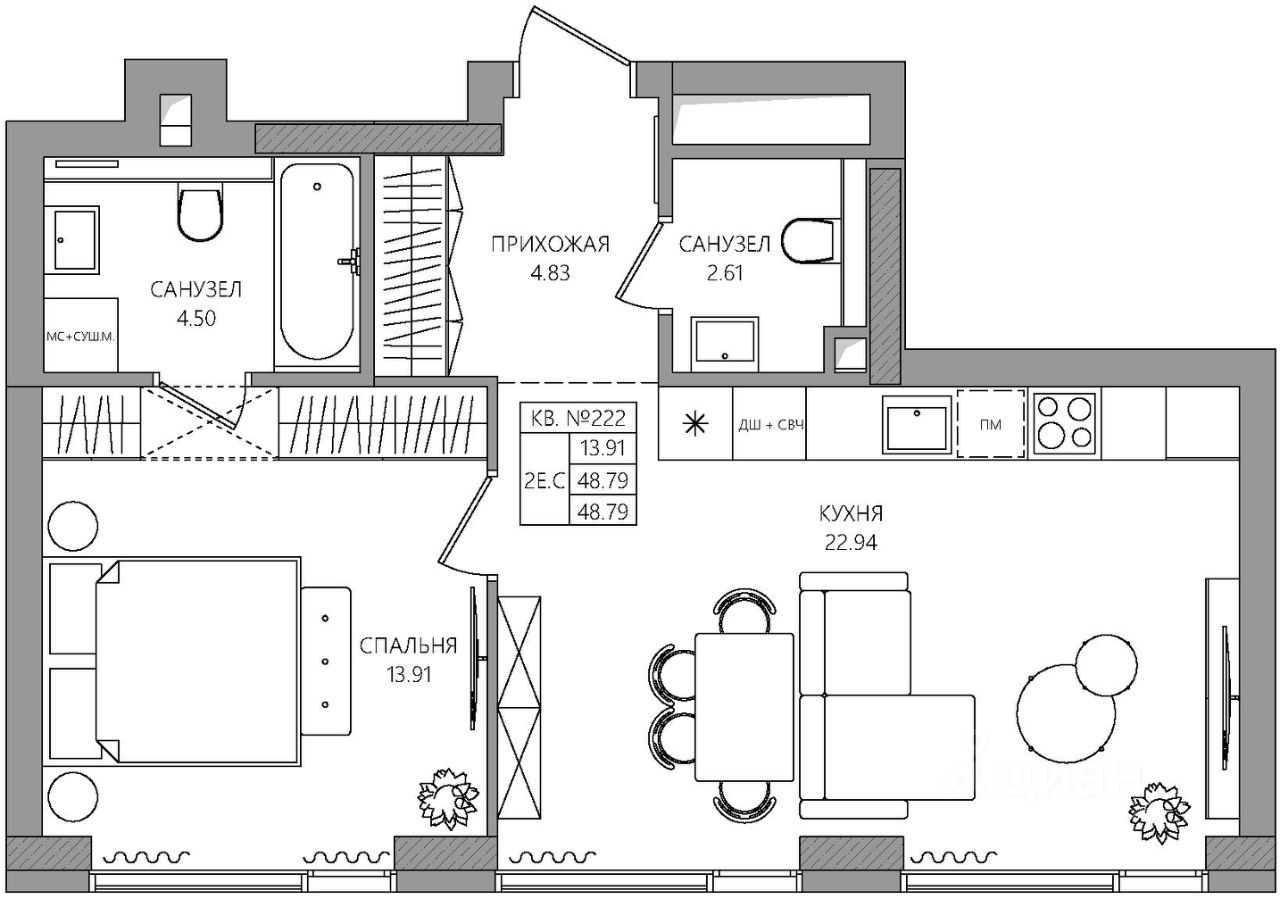 Продаётся 2-комнатная квартира в строящемся доме (К2), срок сдачи: I-кв. 2030, общей площадью 48.79 кв.м., на 5 этаже. Новый жилой комплекс ''МАНЕРЫ'' от Специализированного застройщика ''УНО'' расположен по адресу: г. Пермь, по ул. шоссе Космонавтов.