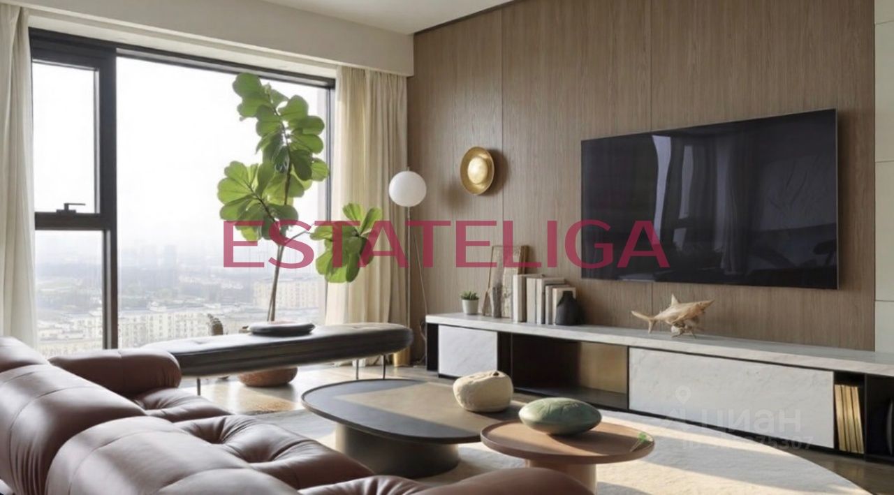 Функциональная планировка включает просторную кухню-гостиную с обеденной зоной, мастер-спальню с собственной гардеробной и ванной, вторую спальню, два санузла и холл. Благодаря панорамному остеклению пространство наполнено светом и теплом, открываются виды на парк Победы.