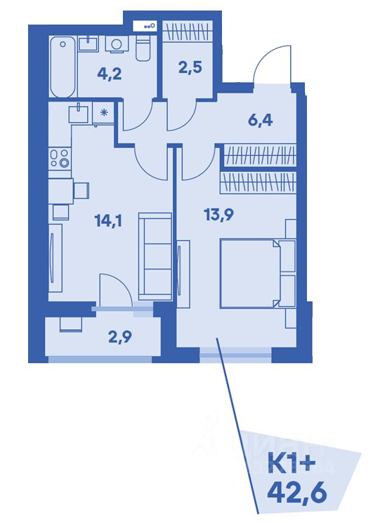 Общая площадь42,6 м2