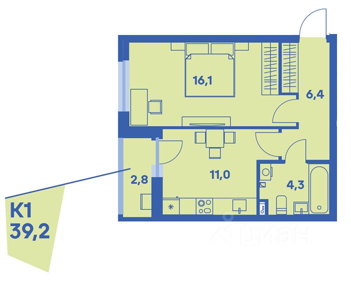 Общая площадь39,2 м2