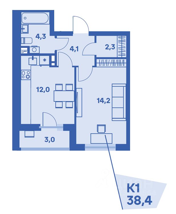 Общая площадь38,4 м2