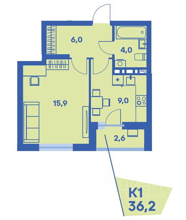 Общая площадь36,2 м2