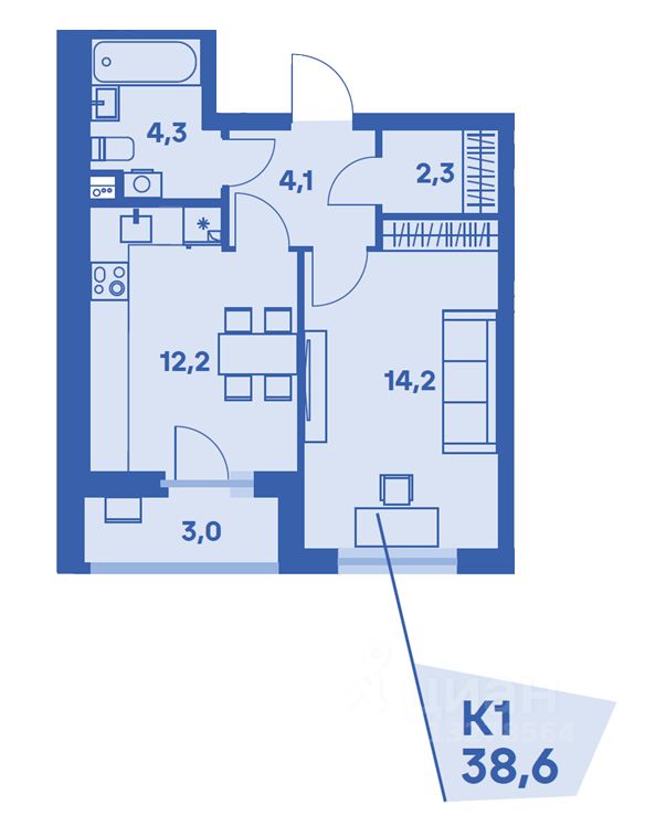 Общая площадь38,6 м2