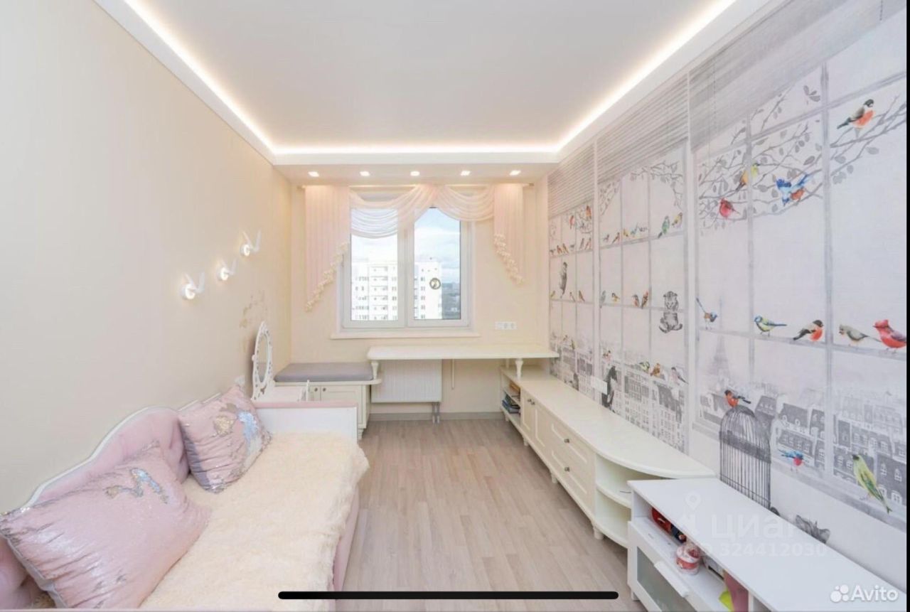 Просторная спальня, нежная детская, длинный коридор. в кухне есть все необходимое: от посудомойки до кофеварки.
