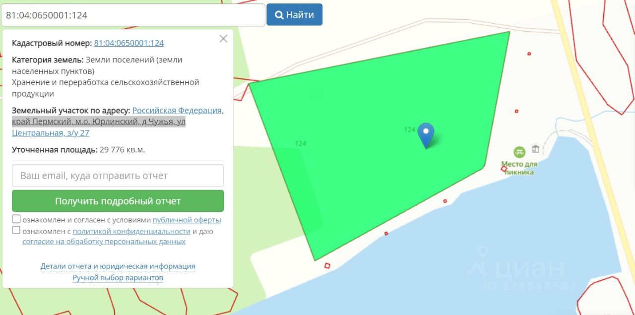 Площадь: 3 га — достаточно места для создания базы отдыха, мини-коттеджного посёлка или усадьбы. Кадастровый номер: 81:04:0650001:124. Участок удобной формы, что упрощает планирование и застройку. Красота природы: