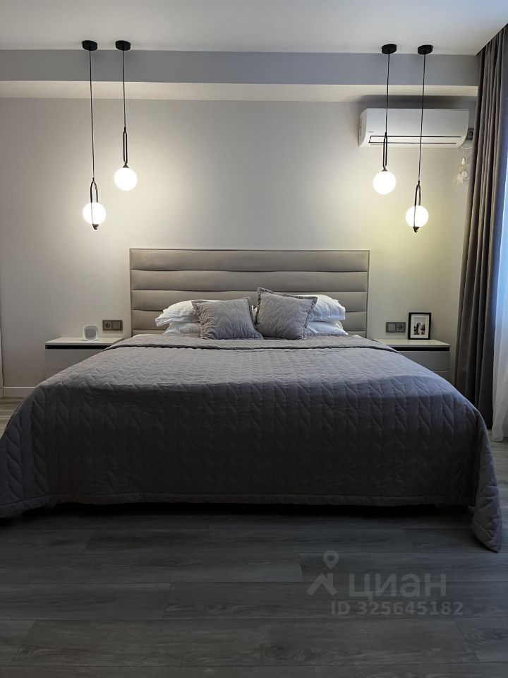 Спальня: Самая большая комната в квартире(19.9 кв.м). Кондиционер. Встроенные шкафы позволяют разместить большой объем вещей. Есть столик для макияжа. Подвесные вместительные тумбы напротив кровати, выведены розетки для тв зоны. Окна выходят на запад, летом можно наблюдать невероятной красоты закаты.