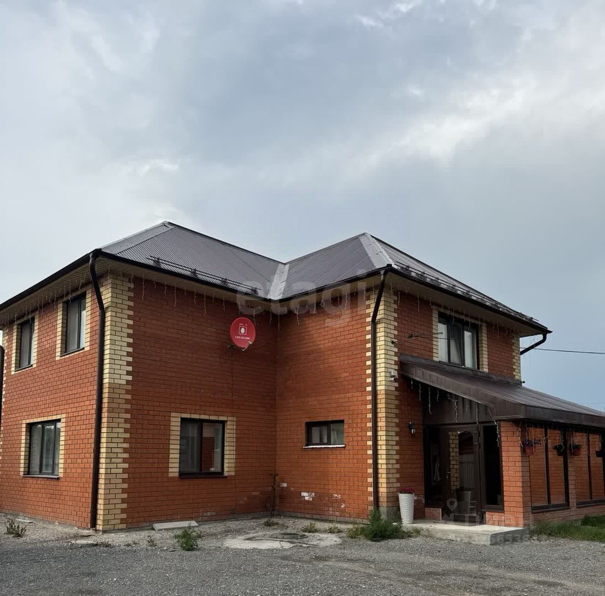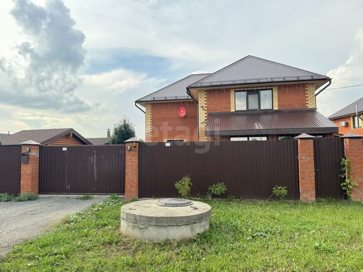 Дом построен из газоблока с утеплением, облицовка кирпич. Водяные теплые полы на первом этаже. Усиленная защита электрики 15 кВт. Газ: доведен до дома. Канализация: выгребная яма. Водоснабжение: скважина.
