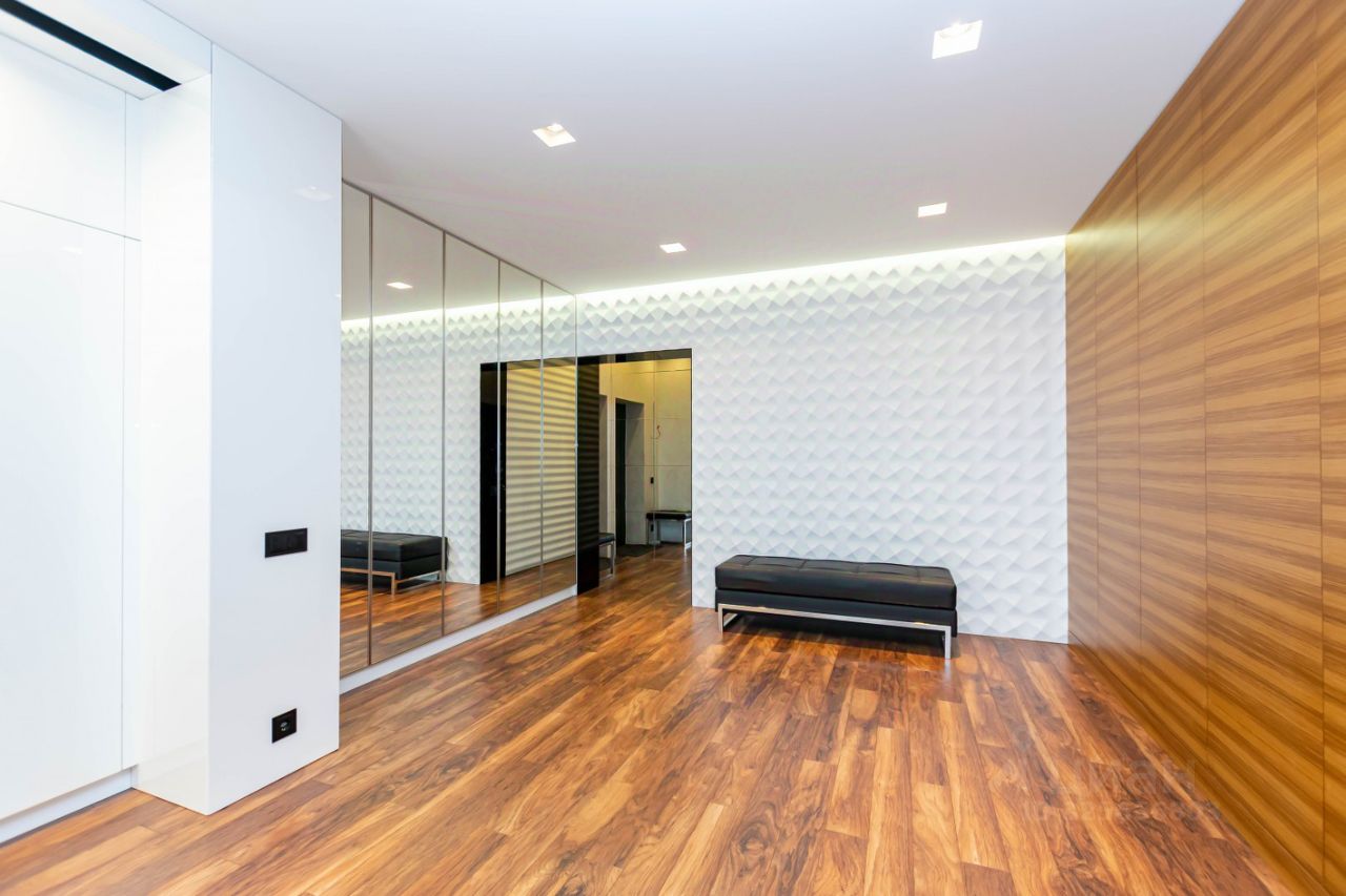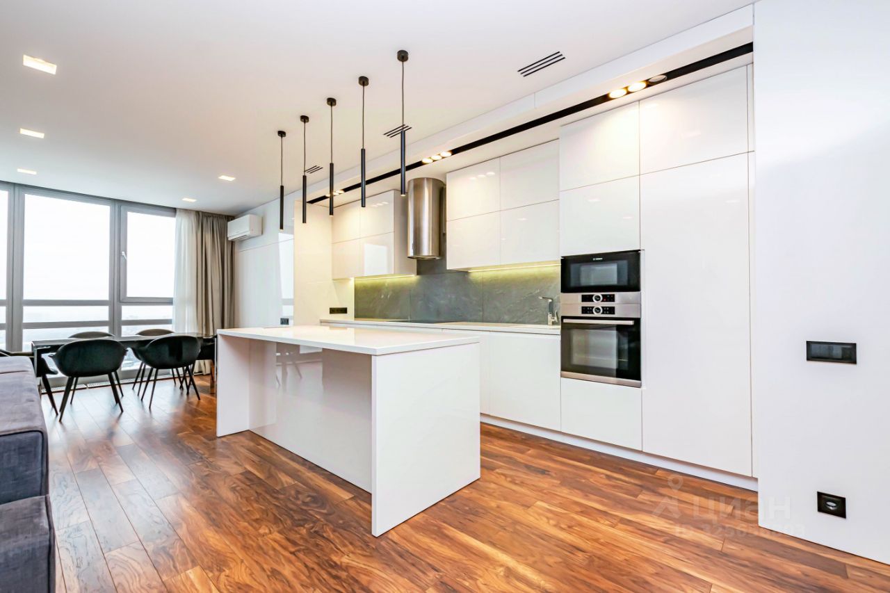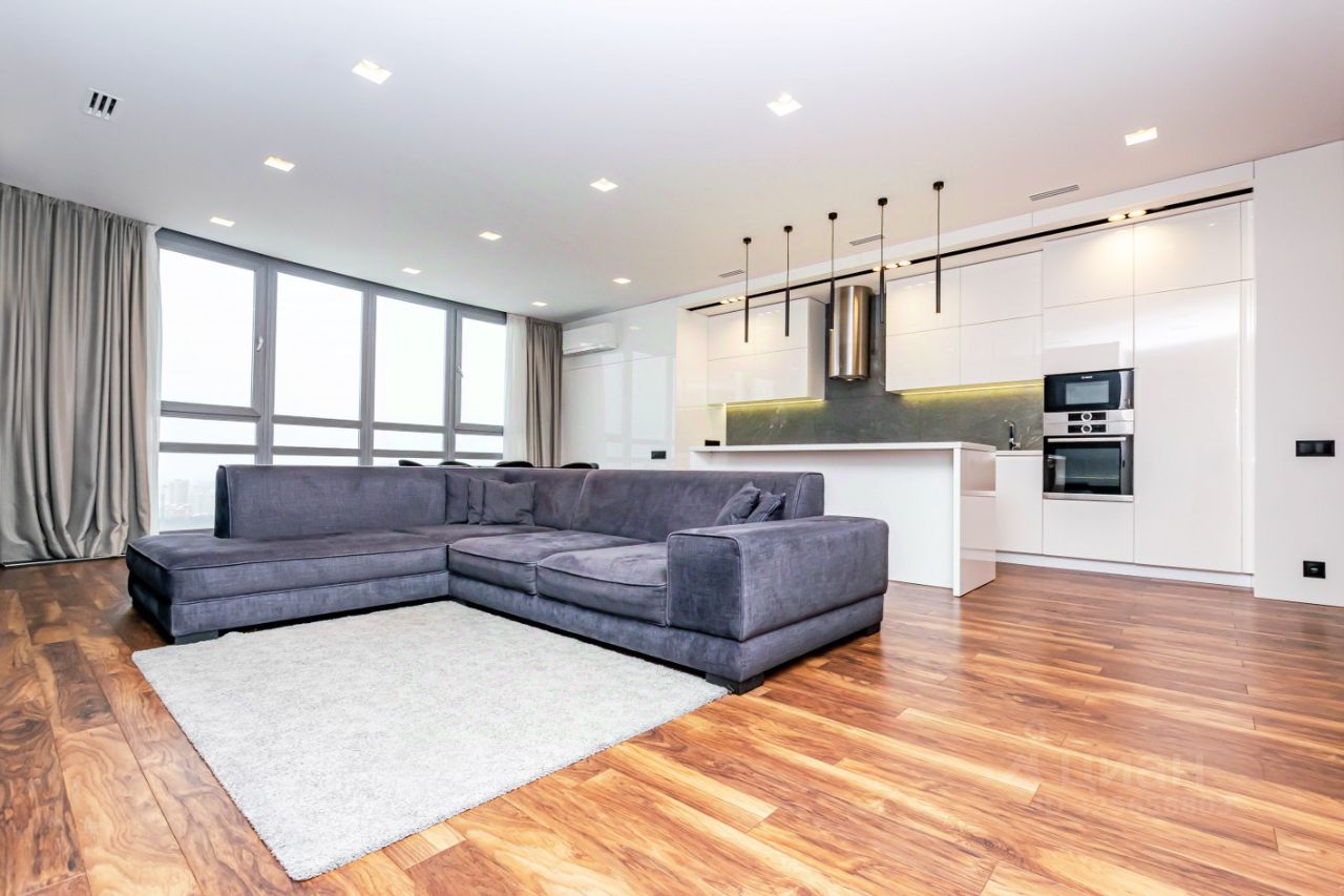 Огромная кухня гостиная, три изолированные спальни, ремонт выполнен известным дизайнерским бюро только из премиальных материалов.