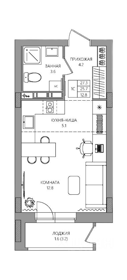 Общая площадь27,3 м2