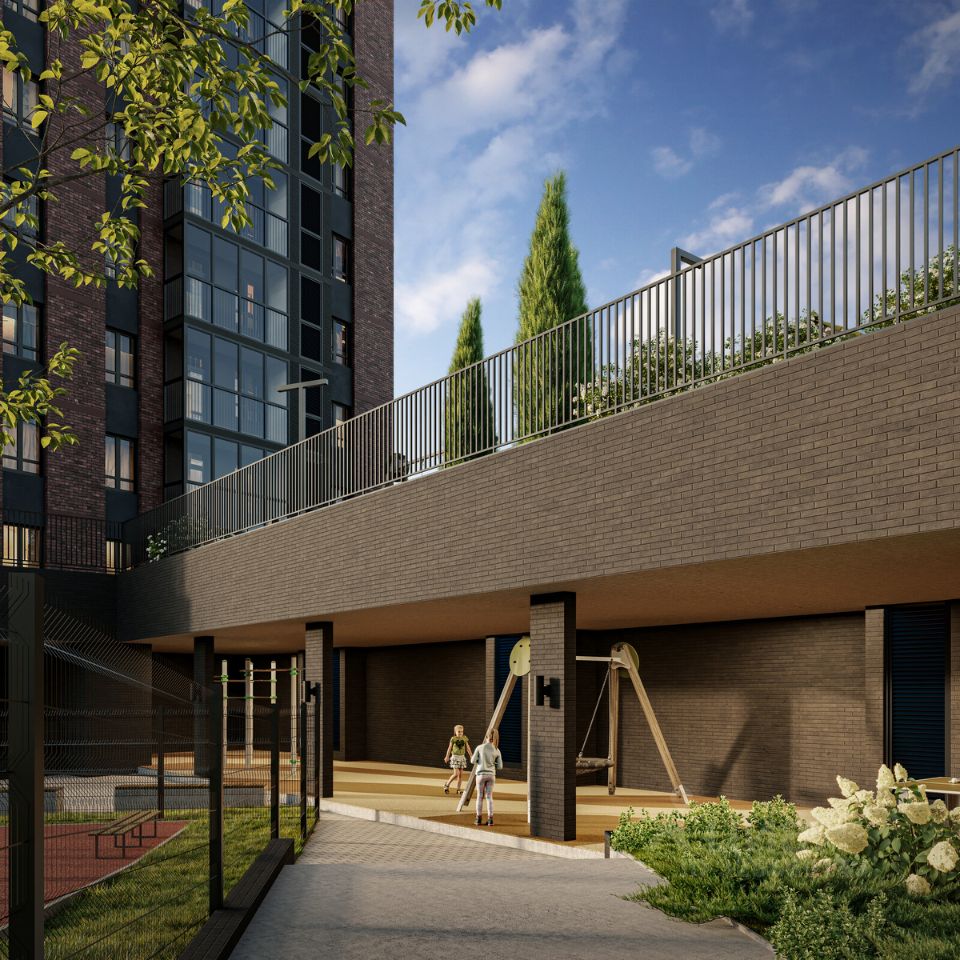 ''Элерон'' — это дом, где каждый день начинается с ощущения полёта. Здесь свобода и лёгкость наполняют каждое пространство, создавая атмосферу, в которой идеи обретают крылья, а моменты — значимость. Дом словно парит над ритмом города, соединяя в себе динамику современности и спокойствие уединения. Концепция ''Элерона'' вдохновлена самим полётом — это жизнь на высоте, где всё построено для гармонии и движения вперёд. В доме всё продумано до мельчайших деталей, словно каждый метр — это часть точного маршрута. Стилобатная секция напоминает о крыльях самолёта, расправленных для нового взлёта. Семейные встречи в лаунж-зоне, работа в коворкинге и отдых во дворе здесь переплетаются в единый поток, где каждый шаг — это взвешенное решение, а каждая минута прожита осознанно. ''Элерон'' — ваш личный аэродром, готовый к новым горизонтам
