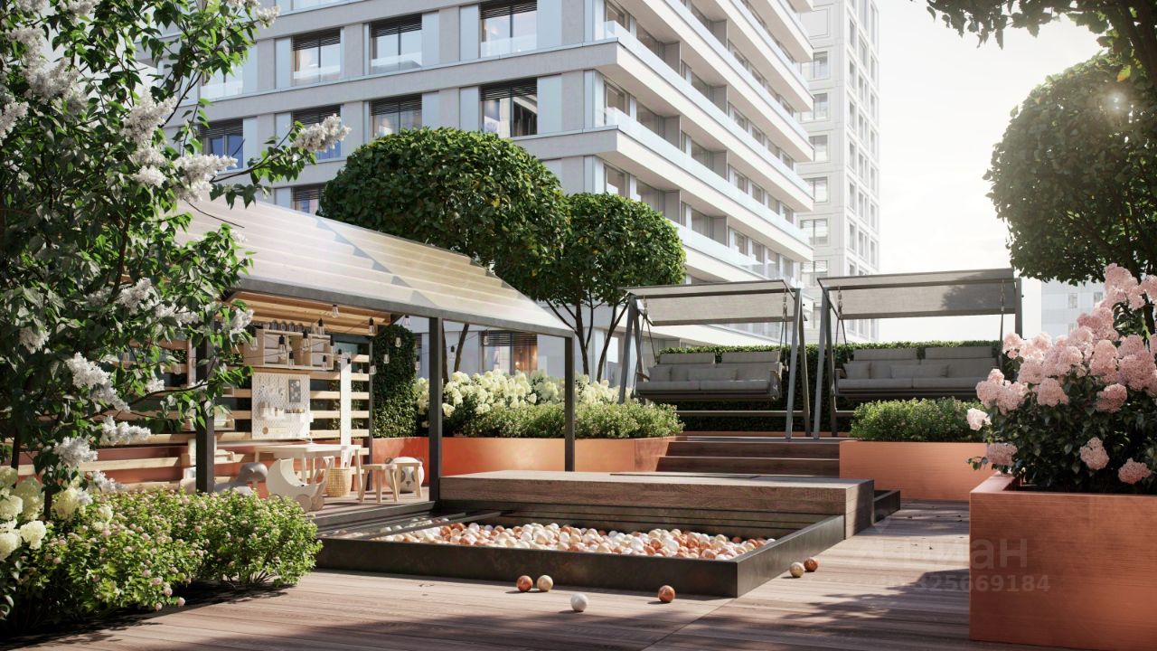 На уровне четвёртого этажа устроим главное открытое пространство для отдыха на свежем воздухе — только для жителей ''Гоголя 21''. В центре террасы — большая зона с летней кухней: гриль, барная стойка, общий стол и уютная лаунж-зона, где можно собраться компанией. В событийной зоне поставим беседку и большой стол с азиатским грилем — место для ужинов и летних вечеринок. Пространство примыкает к залу для праздников, поэтому летом здесь можно устраивать большие соседские встречи.