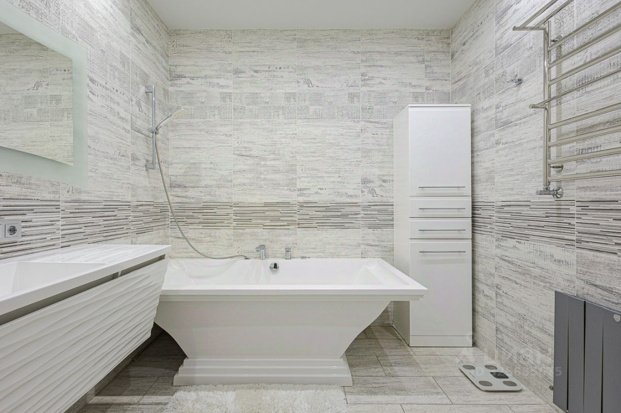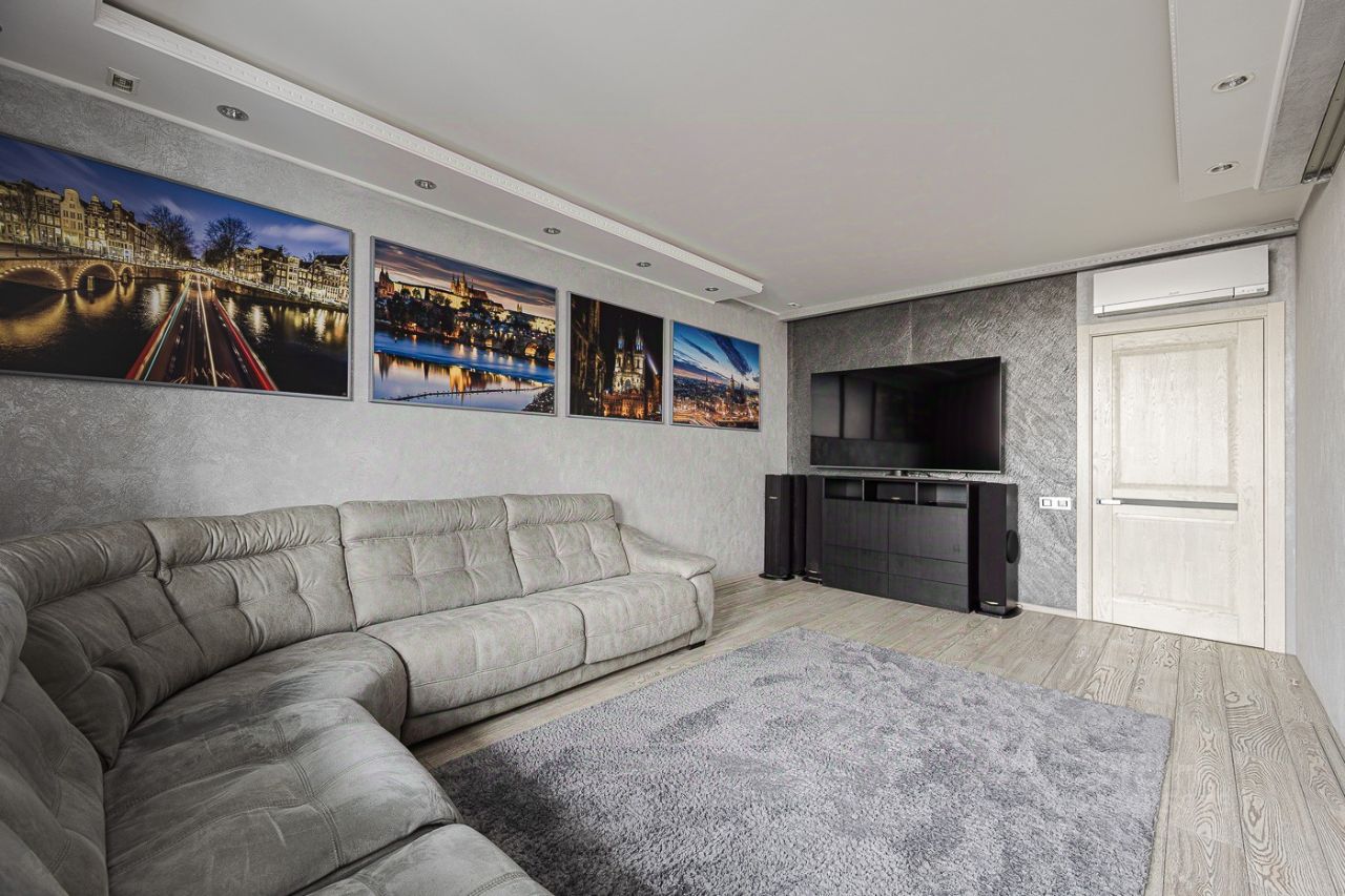 Дизайнерский ремонт выполнен по авторскому проекту в современном стиле с использованием качественных материалов. Полы - дубовый паркет Coswick. Отделка санузлов - керамогранит и плитка премиум-сегмента производства Италии, Испании. Стены декоративная штукатурка.