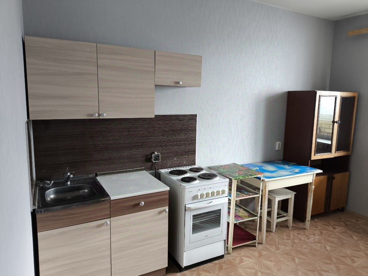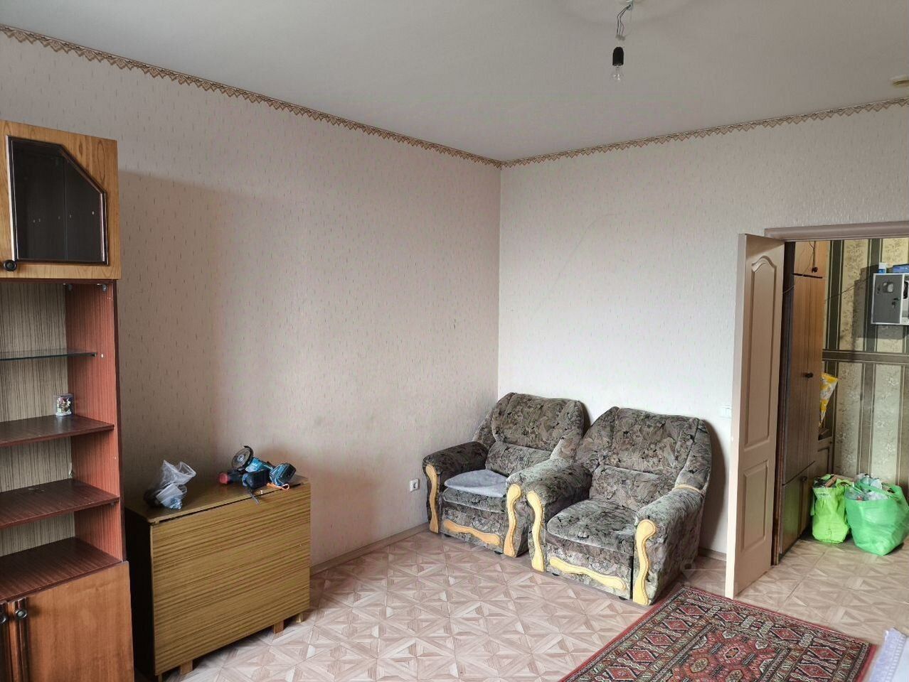 Из мебели есть все необходимое - кухня(кухонный стол, кухонный гарнитур), хранение одежды(шкафы, тумбы), спальные места(два дивана).