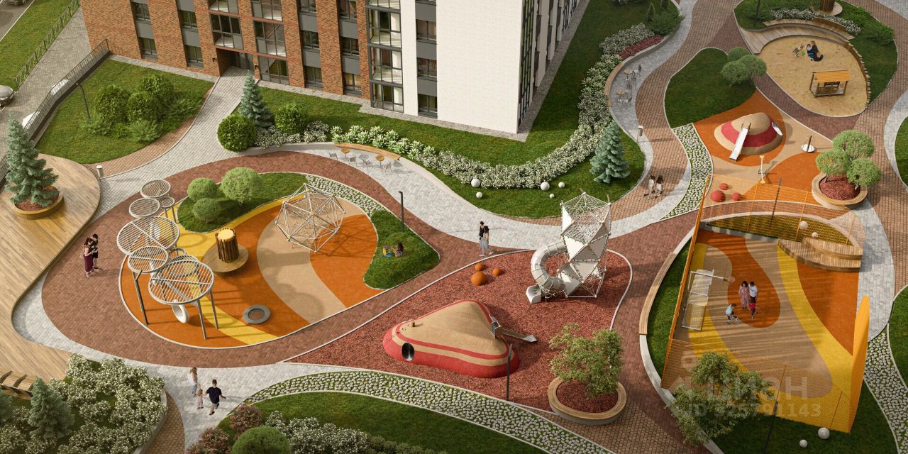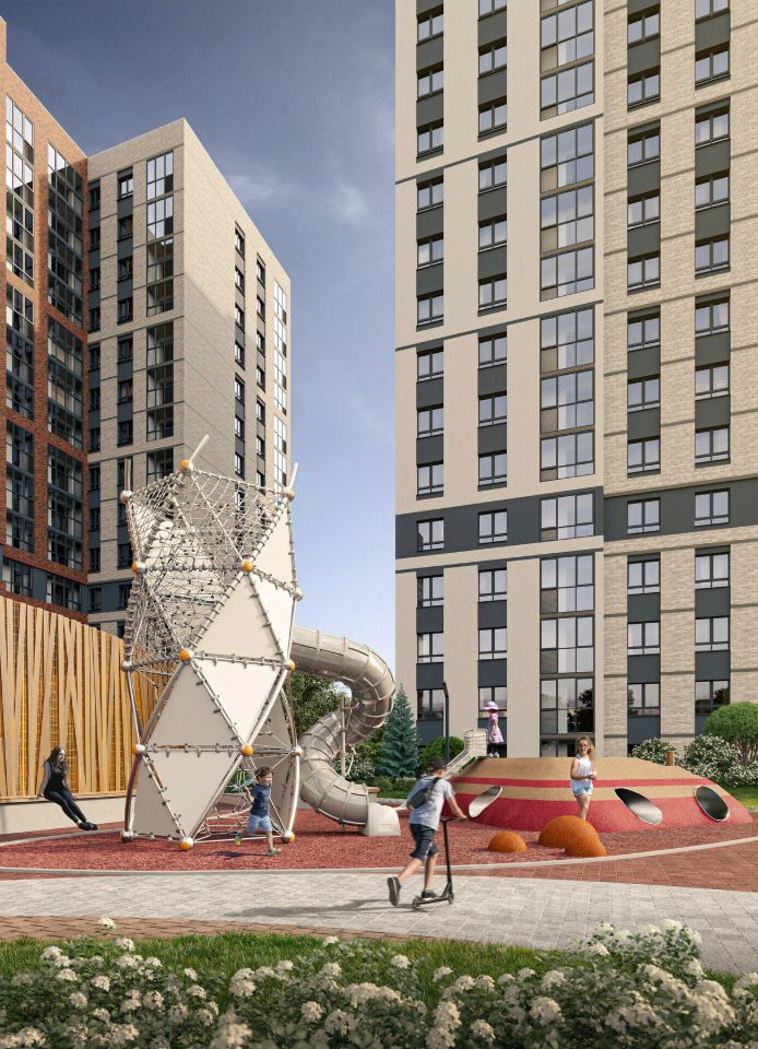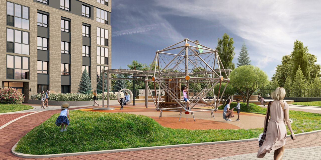 Самый большой двор ИНГРУПП в Кондратово - детская площадка для всех возрастов, зона для коворкинга, уличные гостиные, сцена, ворк-аут зона, разнообразное озеленение и арт-объекты во дворе! Во дворе есть розетки для гаджетов Система умного доступа и видеонаблюдение Просторный наземный паркинг
