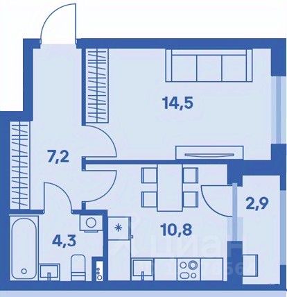 1-комнатная квартира 184