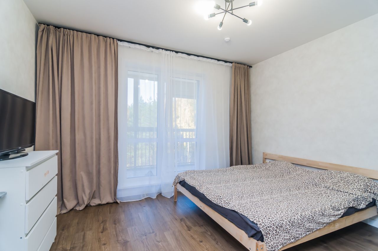 О квартире: — Удобная и функциональная планировка: просторная кухня-гостиная 19,63 м², две изолированные комнаты. — В одной из спален лоджия с панорамным остеклением, много света и воздуха. — Раздельный санузел, выполненный в едином современном стиле. — Качественный ремонт из дорогих материалов: ламинат премиум-класса, керамогранит, сантехника высокого уровня. — В коридорах и комнатах предусмотрено много мест хранения. — Кухонный гарнитур и встроенная техника остаётся новым владельцам! — Из окон открывается прекрасный вид на сосновый лес — тишина и ощущение уюта каждый день.