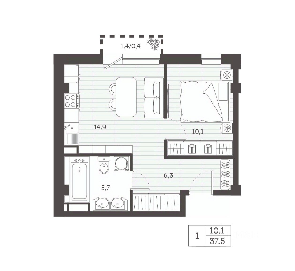 Большие окна и обширные лоджии создают световую галерею: естественный свет зонирует планировку на световые поля, а вечерняя палитра горизонта становится частью дневной эстетики