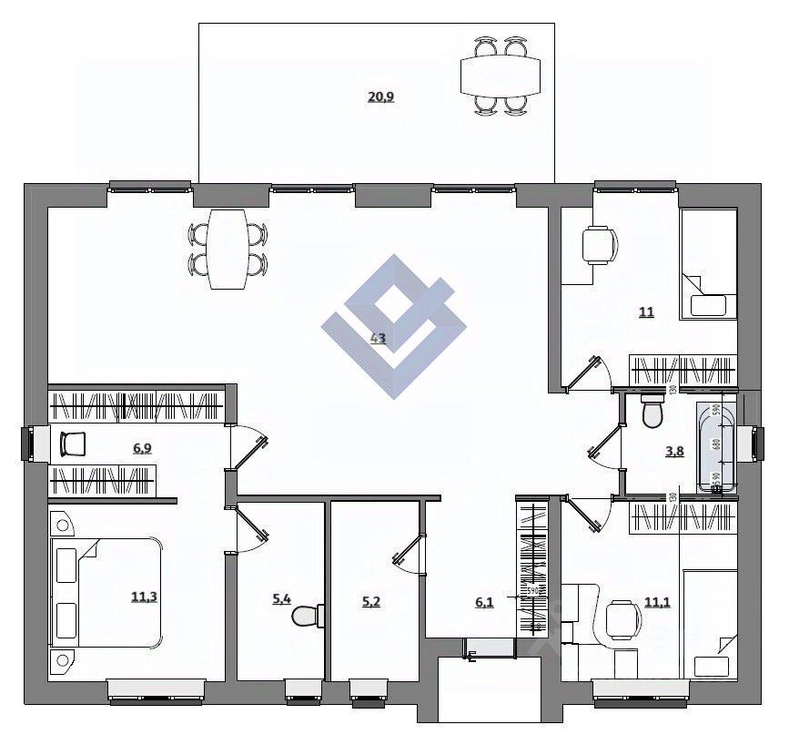 Общая площадь122,2 м2