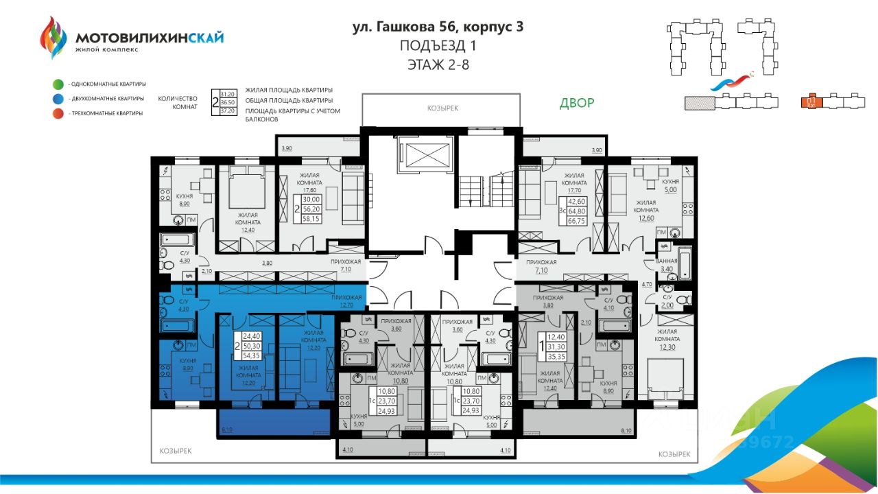продам 2-к, Гашкова, 56 корп. 39 998 090 ₽
