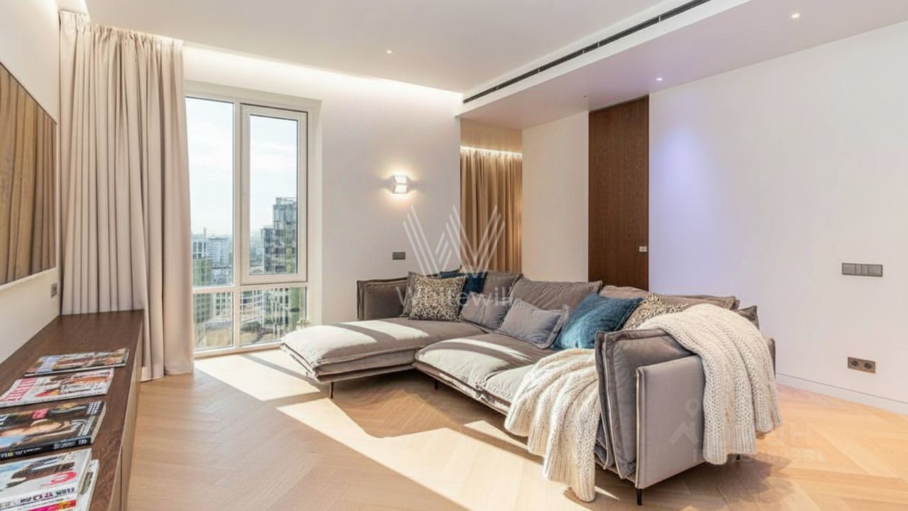 Видовая квартира с 2 спальнями общей площадью 99 м² в комплексе Now на берегу Москвы-реки. Квартира с дизайнерской отделкой расположена на 20 этаже в корпусе 1. Интерьер оформлен в современном стиле в светлых лаконичных тонах. Функциональная планировка включает кухню-гостиную с обеденной зоной, 2 спальни, ванную комнату с окном и сауной, холл. Квартира меблирована и укомплектована бытовой техникой. Благодаря панорамному остеклению пространство наполнено естественным светом и теплом. Из окон открываются виды на город и набережную Москвы-реки.
