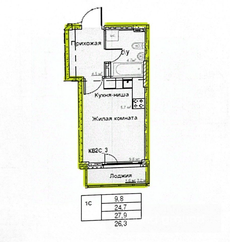 — жилая комната 9,8 кв.м.,