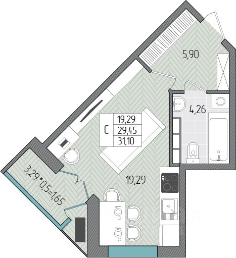 Общая площадь31,1 м2