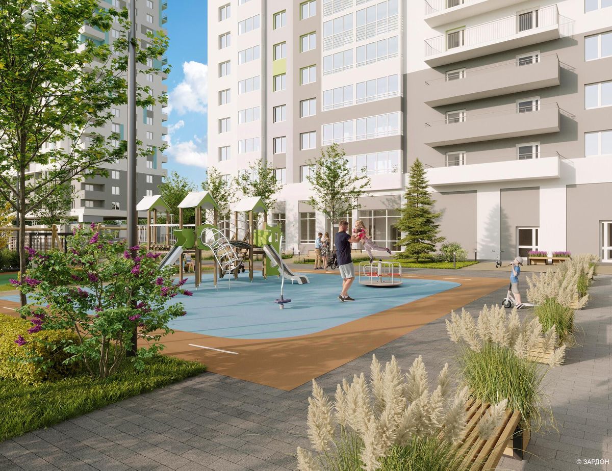Наполнение дома На первом этаже расположены колясочные и комната для консьержа. Предусмотрено четыре высокоскоростных и безопасных лифта с современным дизайном и качественной отделкой. Дизайнерские холлы выполняются по авторскому проекту. Уютные и эргономичные квартиры правильной формы для счастливых семей. Широкий выбор конфигураций и размеров позволяет подобрать идеальный вариант под свой бюджет. Наши СМАРТ-планировки тщательно проработаны проектировщиками для того, чтобы ваша жизнь в наших квартирах заиграла новыми красками. Классические и европланировки с кухней-гостиной под разный стиль жизни. Ухоженный и благоустроенный двор Уникальное решение дворовая территория на уровне второго этажа. Возможность проводить время с родными и близкими в спокойной и уютной атмосфере. Эта часть станет одним из любимых мест для посещения. Двор без машин дворовая территория создана таким образом, чтобы обезопасить взрослых и детей от автомобильного транспорта. Разнообразие игровых зон и тематических площадок для детей разного возраста: качели, карусели и интерактивные зоны. Зона воркаута будет оснащена различными тренажёрами и спортивными комплексами. Также на территории расположены футбольная и баскетбольная площадка. Дети и взрослые могут проводить совместные занятия спортом и устраивать соревнования. Безбарьерная среда Для нас важно, чтобы все жители комплекса чувствовали себя максимально безопасно и комфортно. На территории участка предусмотрены пешеходные пути с возможностью движения маломобильных групп населения: перепады высот между входной площадкой и наружной площадкой придомовой территории не превышает 50мм.