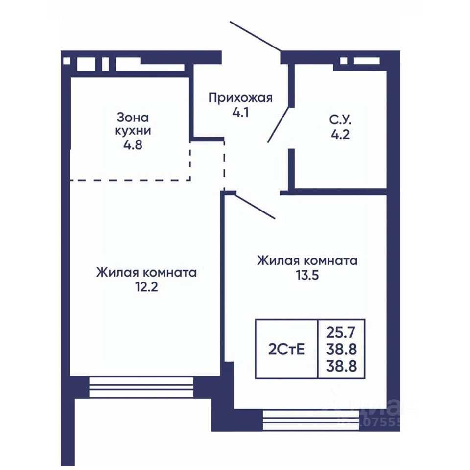 Общая площадь38,8 м2