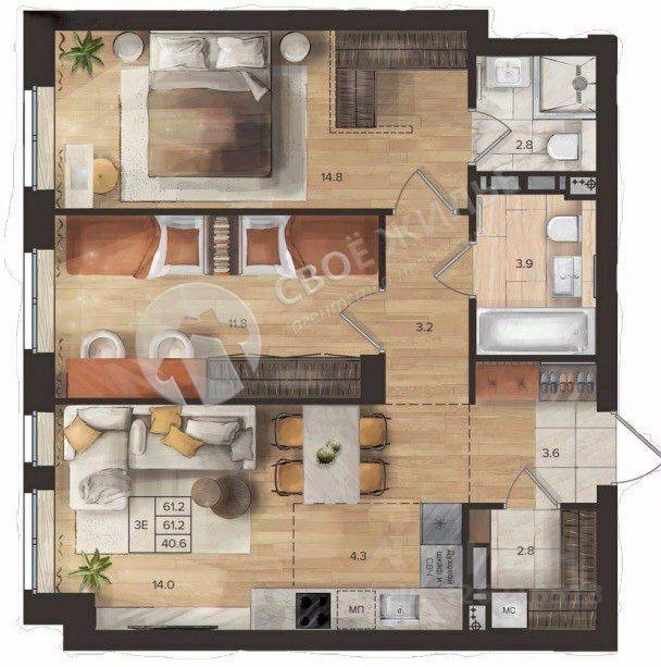 продам 3-к, Подгорная, 10916 955 000 ₽