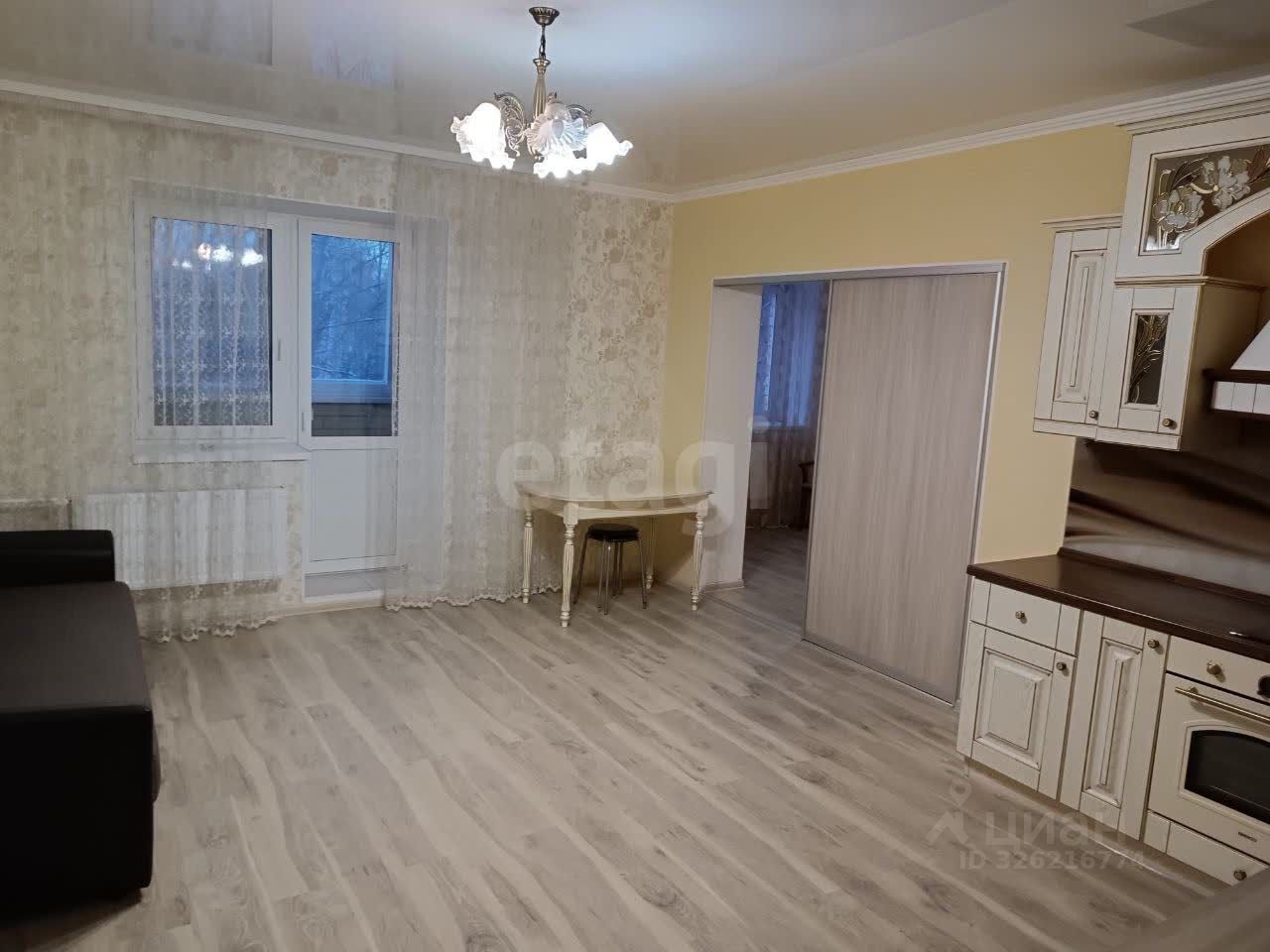 Описание: Просторная квартира с мебелью и бытовой техникой. В наличии кухонный гарнитур, кухонный стол, стулья, плита, холодильник, телевизор, стиральная машина-автомат, диван, шкаф, кровать и т.д.