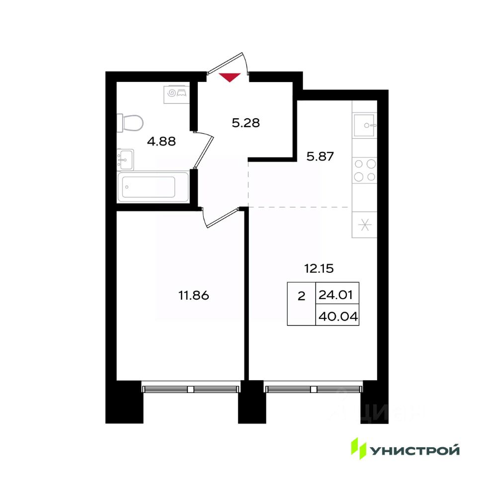 Общая площадь40,04 м2
