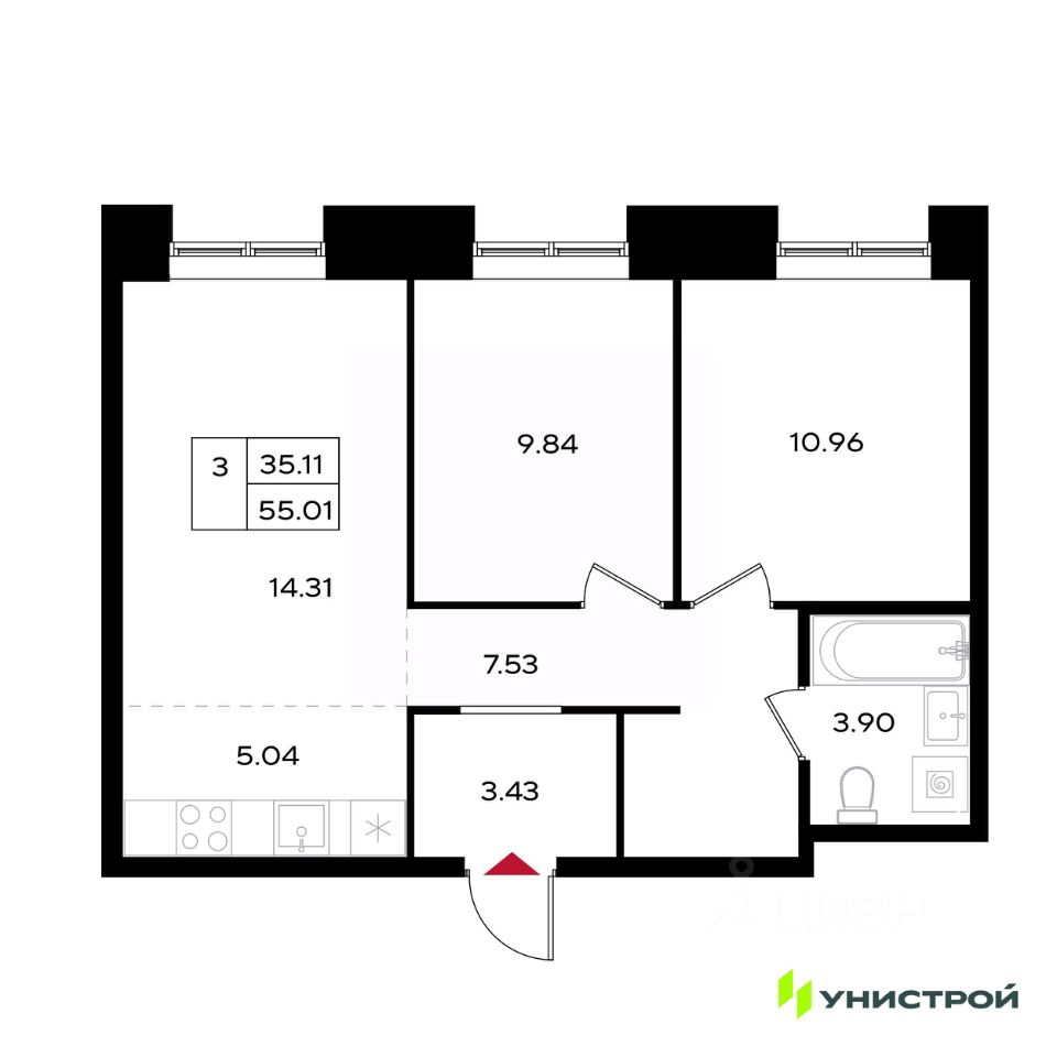 Общая площадь55,01 м2