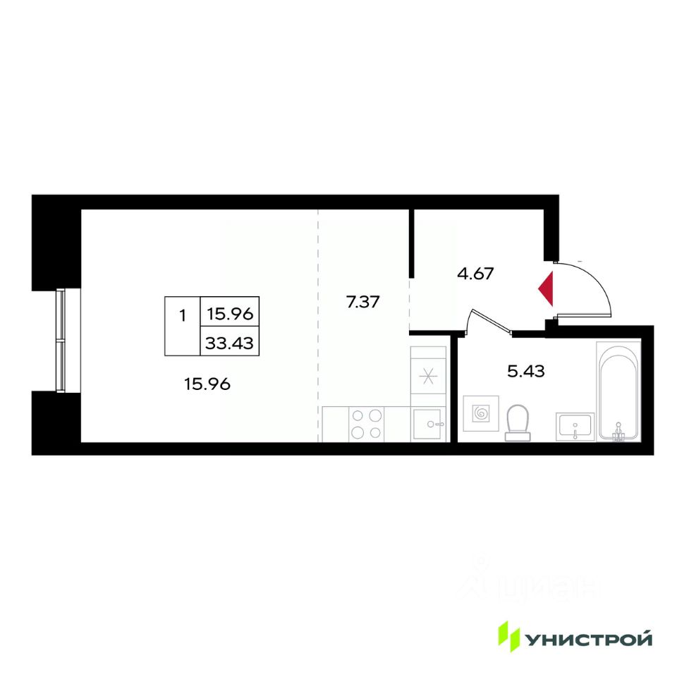 Общая площадь33,43 м2