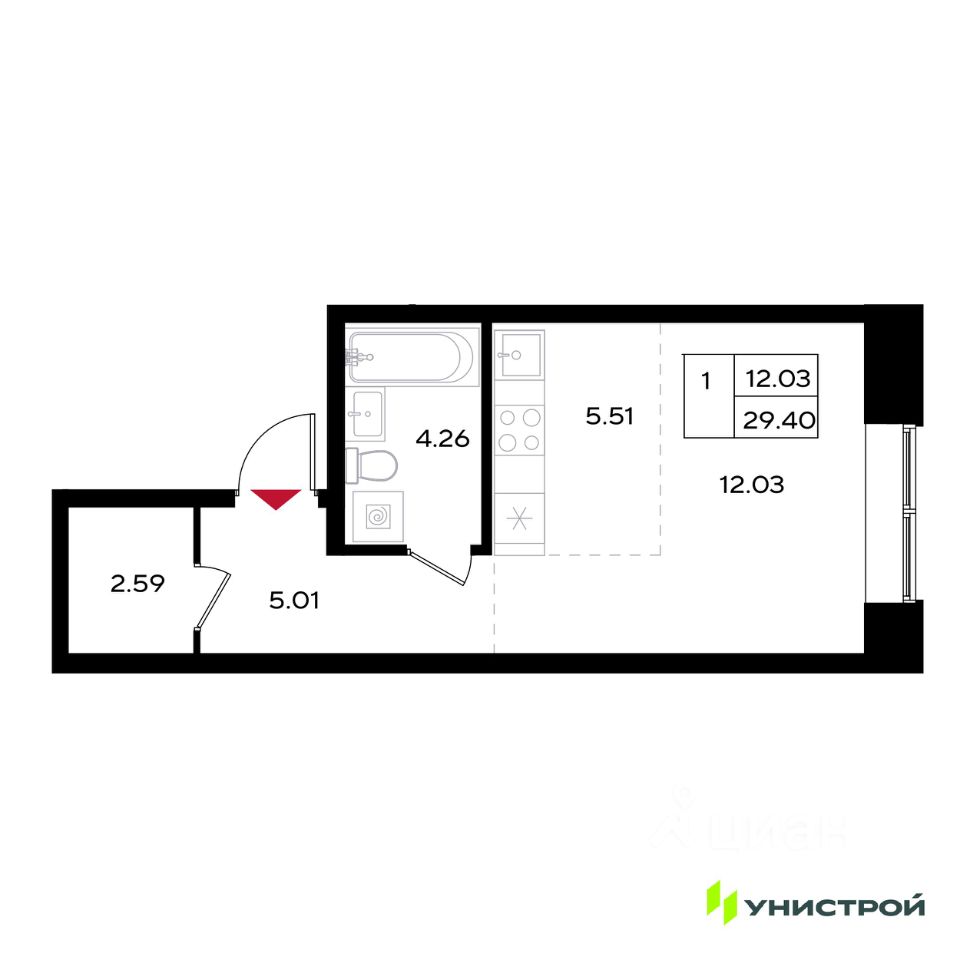 Общая площадь29,4 м2