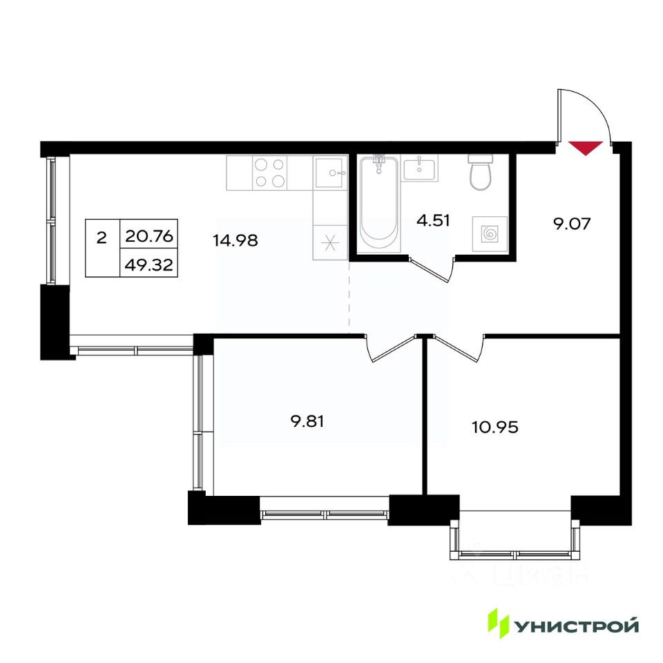 Общая площадь49,32 м2