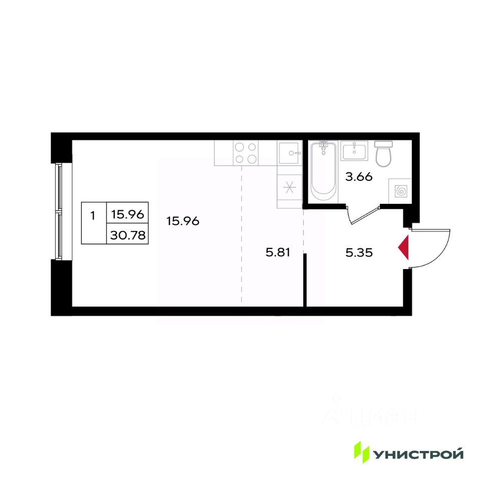 Общая площадь30,78 м2