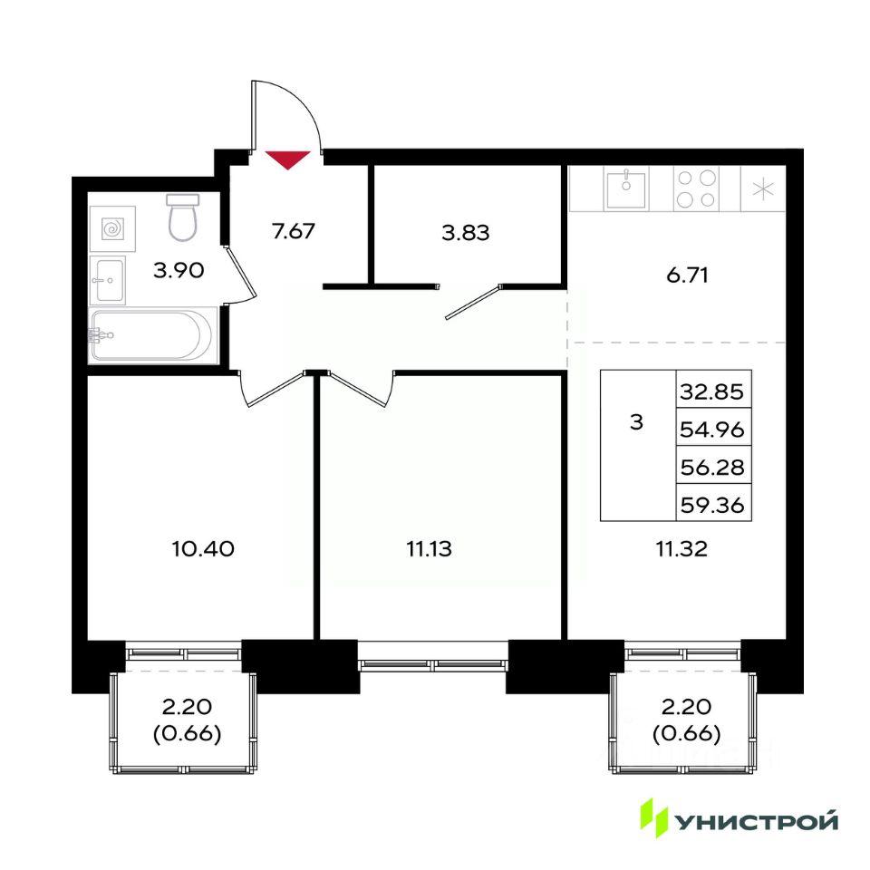 Общая площадь56,28 м2