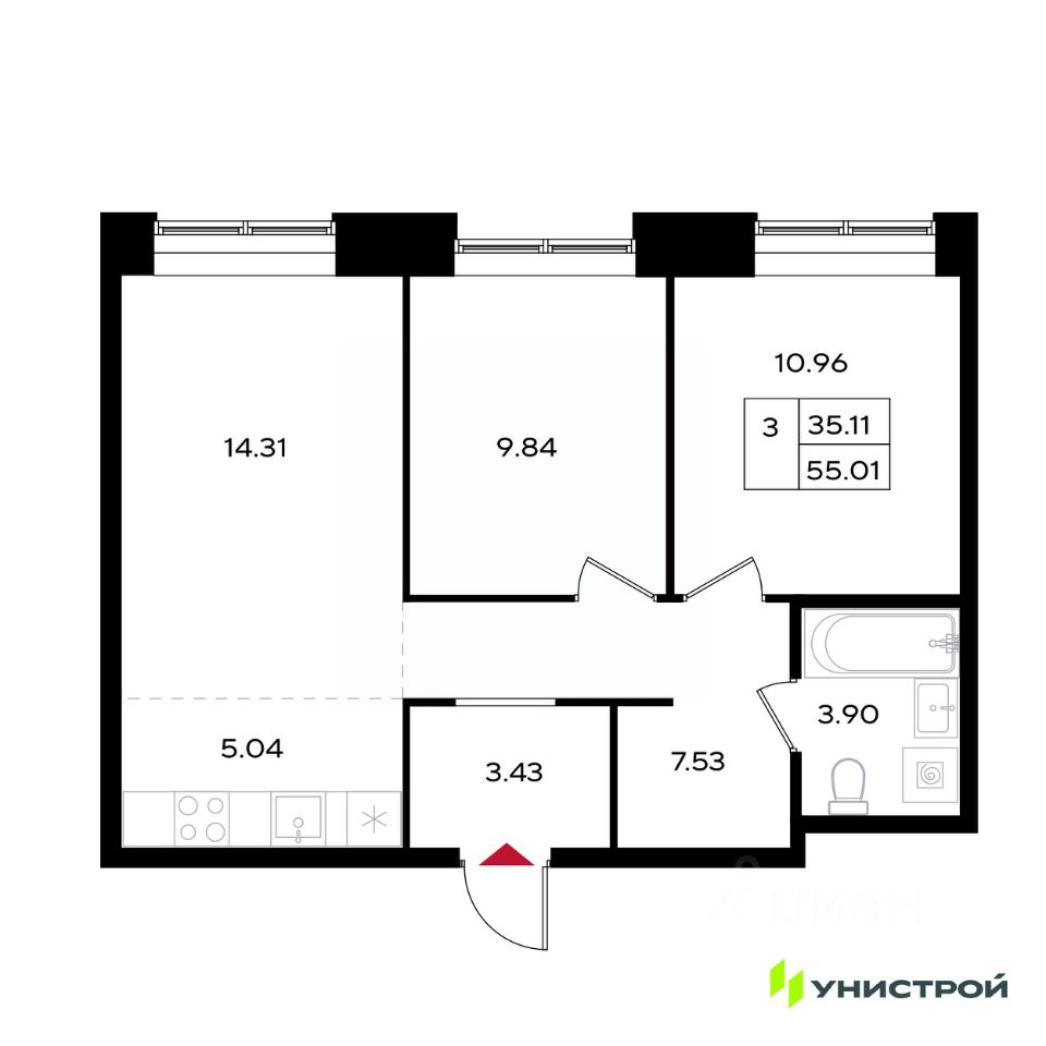 Общая площадь55,01 м2