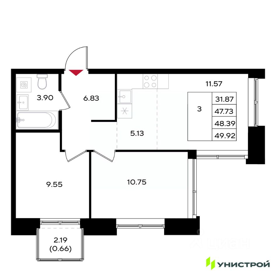 Общая площадь48,39 м2