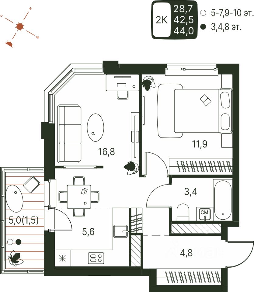 Продаётся студия в строящемся доме (Серебристая, 1), срок сдачи: IV-кв. 2027, общей площадью 44 кв.м., на 4 этаже. Теплые кварталы ''Погода'' — это новый грандиозный проект от создателя Спортивного микрорайона ''Ива'', федерального застройщика ''Девелопмент-Юг'' .