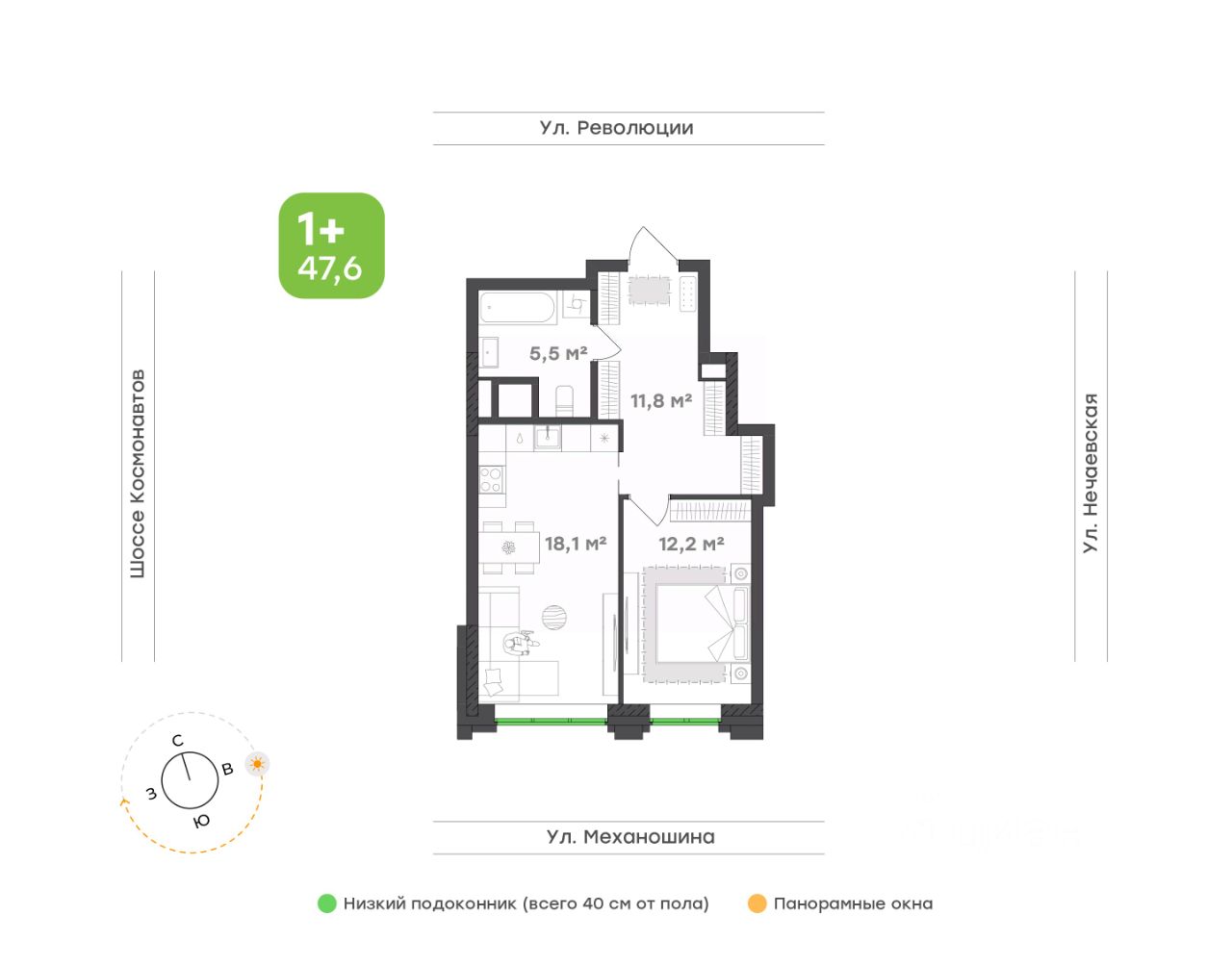 Потолки 2,7 м — ощущение воздуха и архитектурного объёма.