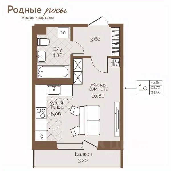 Продаётся 1-комнатная квартира в строящемся доме (Степная, 2), срок сдачи: IV-кв. 2027, общей площадью 24.66 кв.м., на 2 этаже. Новый жилой комплекс ''Родные росы'' от Специализированного застройщика ''Финпроект'' расположен в с. Фролы по ул. Академическая.