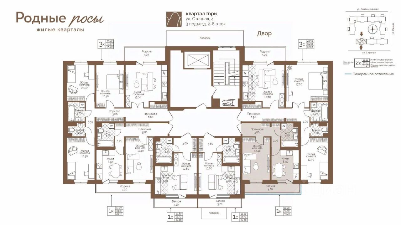 Продаётся 1-комнатная квартира в строящемся доме (Степная, 2), срок сдачи: IV-кв. 2027, общей площадью 33.4 кв.м., на 7 этаже. Новый жилой комплекс ''Родные росы'' от Специализированного застройщика ''Финпроект'' расположен в с. Фролы по ул. Академическая.