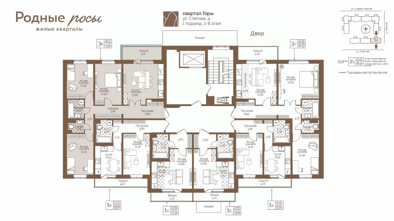 Продаётся 3-комнатная квартира в строящемся доме (Степная, 2), срок сдачи: IV-кв. 2027, общей площадью 74.8 кв.м., на 8 этаже. Новый жилой комплекс ''Родные росы'' от Специализированного застройщика ''Финпроект'' расположен в с. Фролы по ул. Академическая.