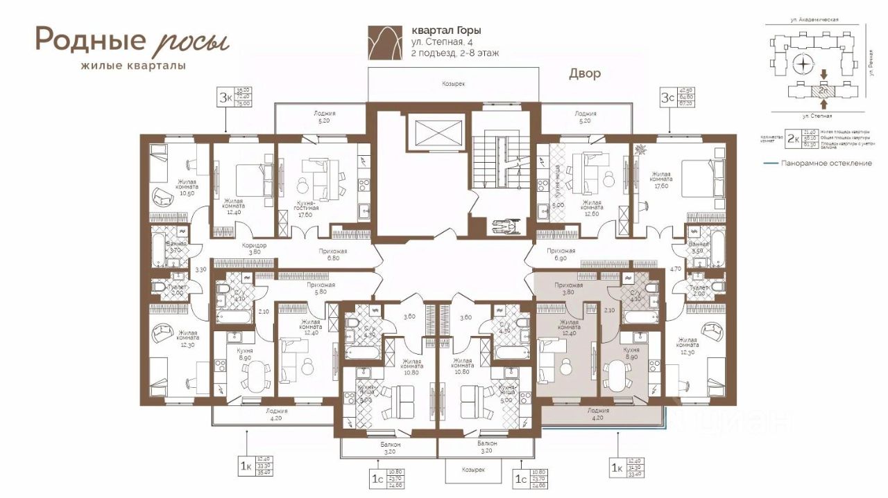 Продаётся 1-комнатная квартира в строящемся доме (Степная, 2), срок сдачи: IV-кв. 2027, общей площадью 33.4 кв.м., на 4 этаже. Новый жилой комплекс ''Родные росы'' от Специализированного застройщика ''Финпроект'' расположен в с. Фролы по ул. Академическая.