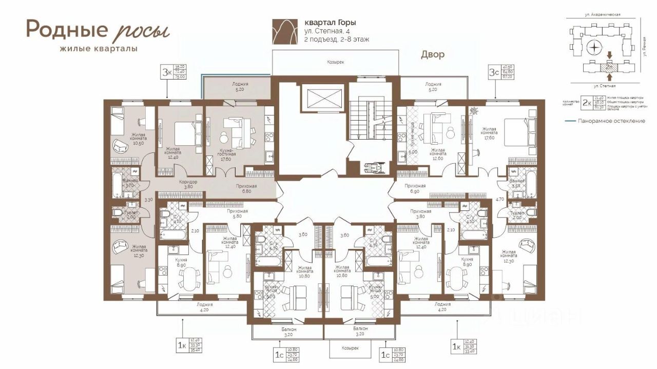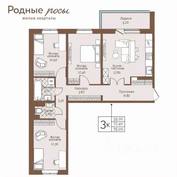 Продаётся 3-комнатная квартира в строящемся доме (Степная, 2), срок сдачи: IV-кв. 2027, общей площадью 75 кв.м., на 5 этаже. Новый жилой комплекс ''Родные росы'' от Специализированного застройщика ''Финпроект'' расположен в с. Фролы по ул. Академическая.