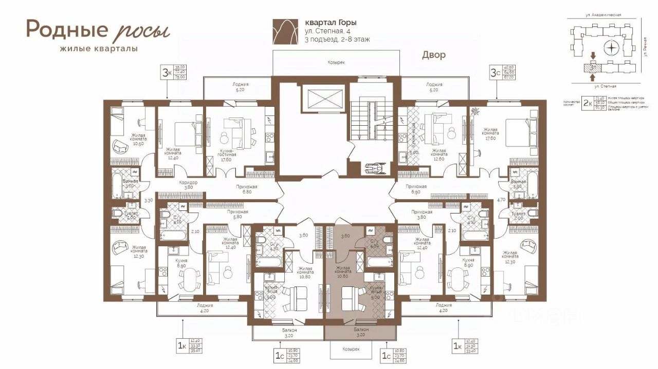 Продаётся 1-комнатная квартира в строящемся доме (Степная, 2), срок сдачи: IV-кв. 2027, общей площадью 24.66 кв.м., на 3 этаже. Новый жилой комплекс ''Родные росы'' от Специализированного застройщика ''Финпроект'' расположен в с. Фролы по ул. Академическая.