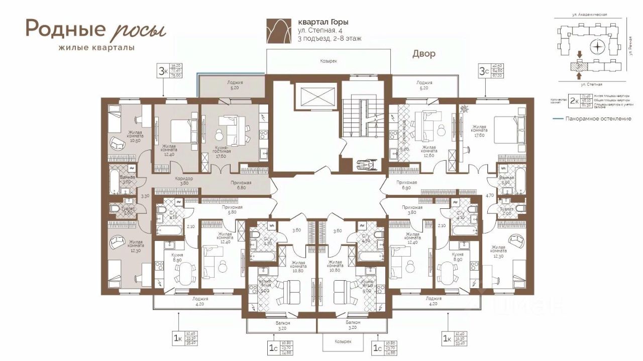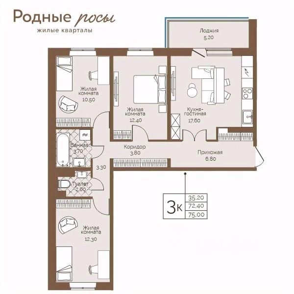 Продаётся 3-комнатная квартира в строящемся доме (Степная, 2), срок сдачи: IV-кв. 2027, общей площадью 74.8 кв.м., на 3 этаже. Новый жилой комплекс ''Родные росы'' от Специализированного застройщика ''Финпроект'' расположен в с. Фролы по ул. Академическая.